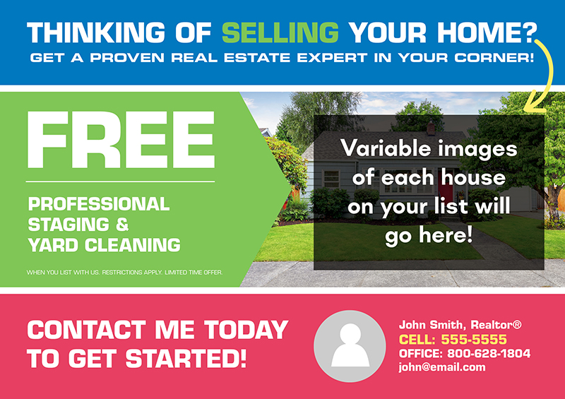 Call our marketing consultants at 1-800-628-1804 to talk about a real estate postcard campaign or any other aspect of realtor marketing — it’s FREE!