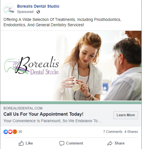 Borealis Dental Studio contacted us to design a dental office marketing campaign using dentist postcards and Google ads to attract more new prospective patients for their family-owned practice.
