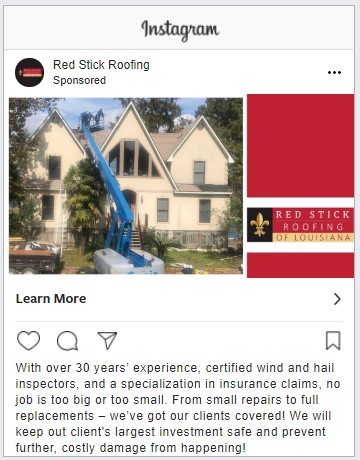 With the help of our marketing consultants, Red Stick Roofing decided to run an integrated direct mail campaign bundled with Google, Instagram and Facebook advertising in our Everywhere Small Business package.